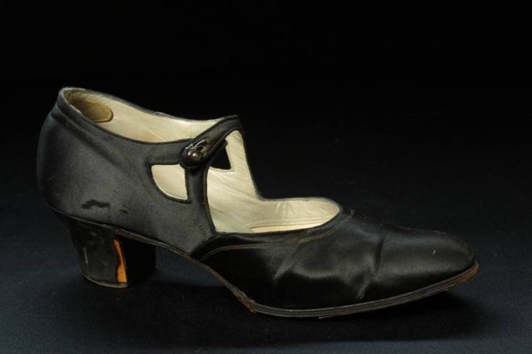 DescriptionLouvenia Donaghey's shoes she wore during the Inauguration of George Washington Donaghey as the twenty-second Governor of Arkansas in January 1909. The shoes are made of black satin and feature an ankle strap fastened by a black button. The shoe features a cuban heel. The interior of the shoe is lined in white fabric.