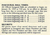 DescriptionAn information card pertaining to the available transportation for each of the official Inaugural Balls and the Inaugural Gala of President Bill Clinton on January 20, 1993. The card was found inside an envelope (see 2019.009.31.1).
