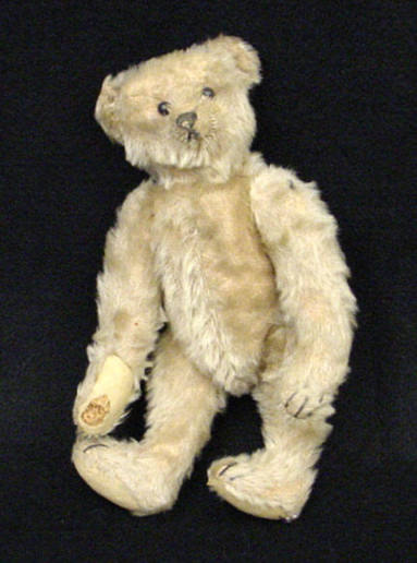 DescriptionPhoto of Lucile King with teddy bear (teddy bear is accession number 1984.023.105). Black and white. Glued to white matting with grey border around the photo.