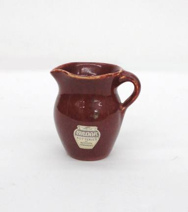 DescriptionNiloak Pitcher - miniature, green in color, with "N" raised mold mark. Picture found on page 195 of "The Collector's Encyclopedia of Niloak (Row 4, No.3)Status