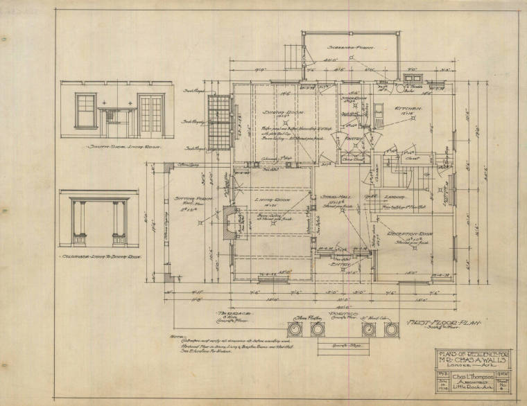 DescriptionCharles Thompson architectural drawing for Charles Walls at 406 Jefferson in Lonoke, Arkansas. First floor plan.Status